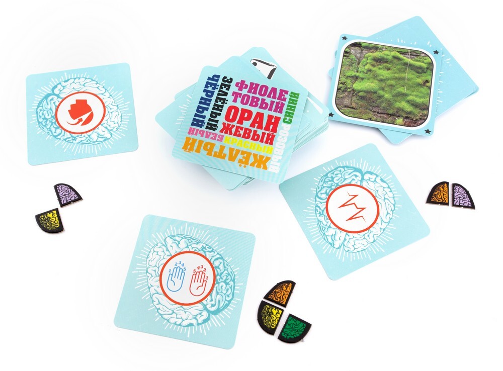 Ну и изюминкой каждой игры являются тактильные карты. Сможете ли вы на ощупь отличить клубнику от баскетбольного мяча. А в "Кортекс 3" вместо тактильных карт - карты с запахом!