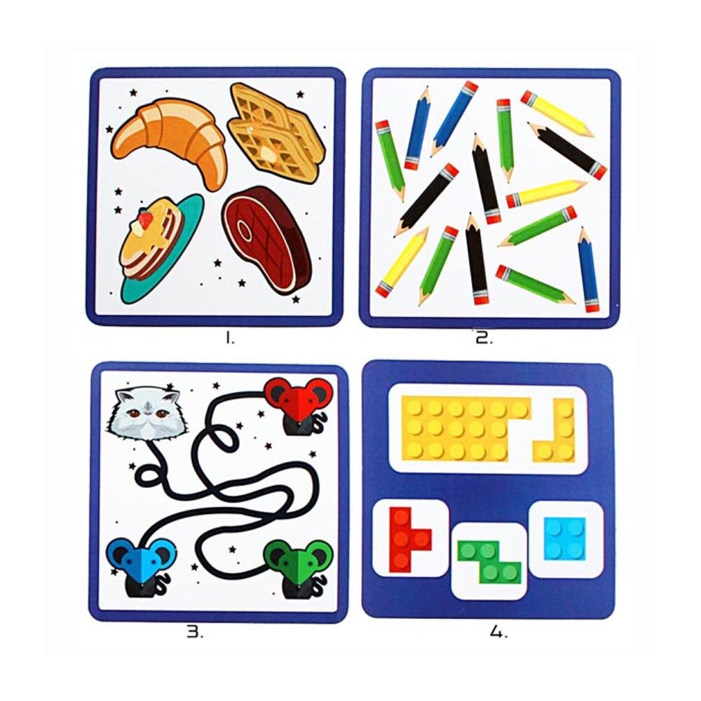 Настольная игра "Кортекс" создана для вечеринок! Уже существует 5 видов этого хита! Всё просто: тянем карточку, быстрее всех находим правильное решение и забираем карту. В игре 7 типов заданий, накопили две карты одного типа - получите победную фишку. Чтобы победить, необходимо собрать первым 4 разных фишки. Какие бывают задания?
